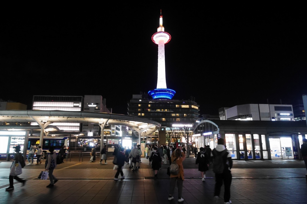 夜景に映える京都タワー。
