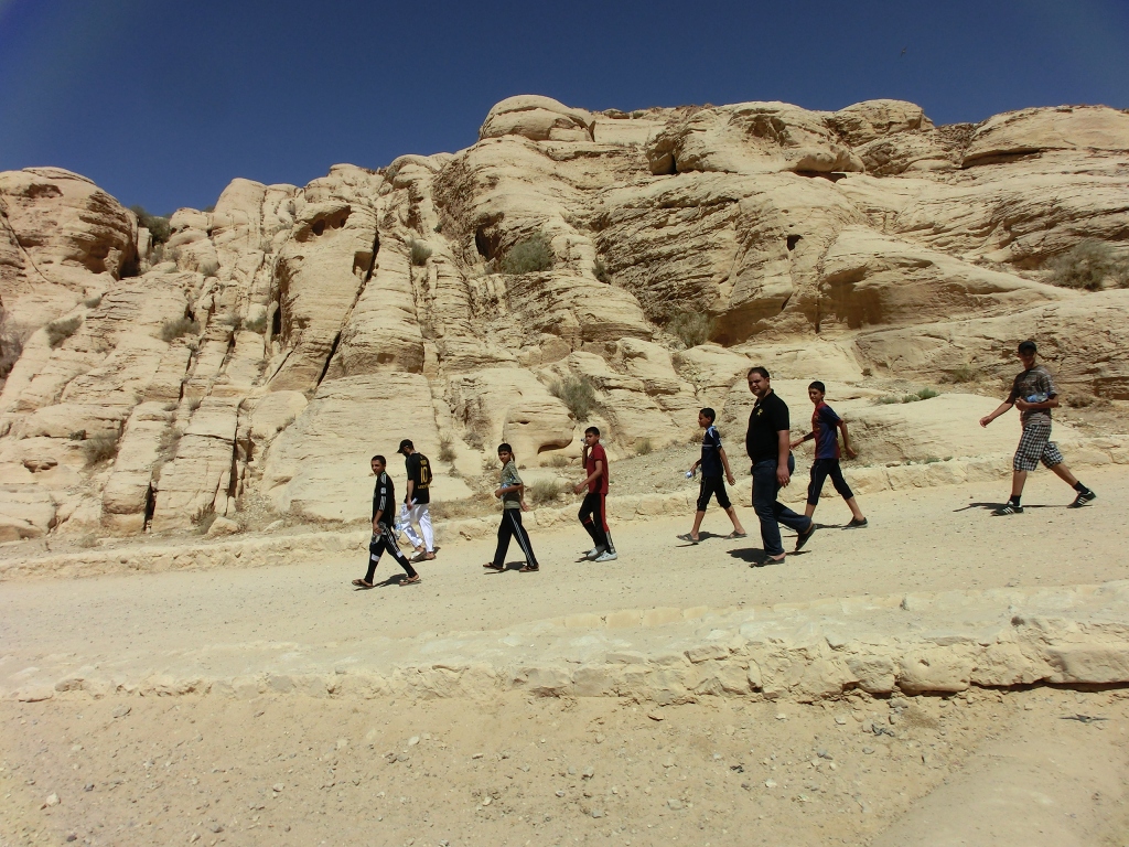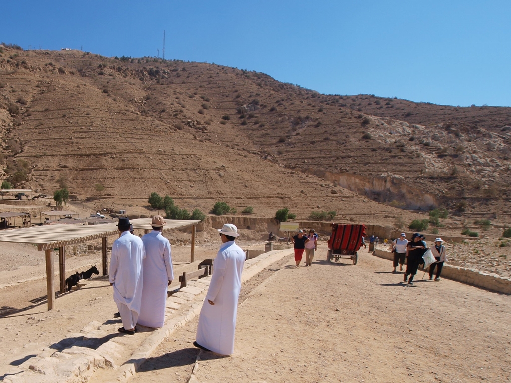 この3人は多分地元の人だろうがちょっとぎこちない。ヨルダン人は普通、白服は着ない。