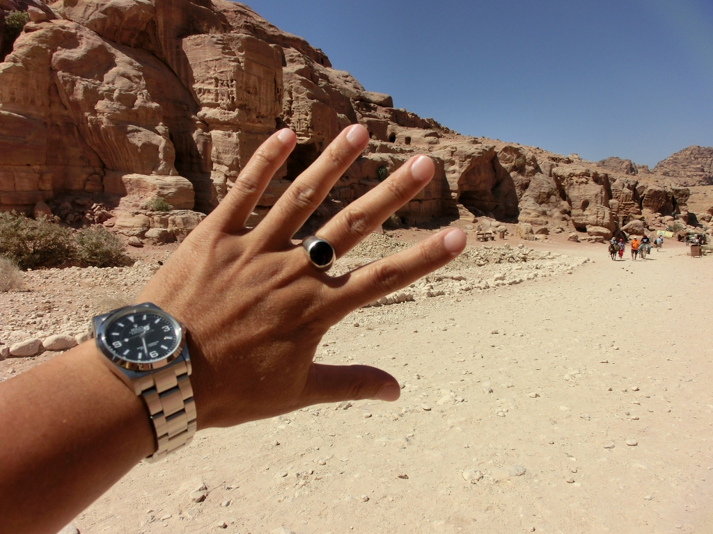 前回は黒の革靴ポストマンシューズに、時計はオメガのスピマスで訪問したが、砂塵と長距離を歩く疲労で散々な目に合った。その経験と土地勘を武器に今回は万全の装備でリベンジ訪問となった訳だ。因みに砂塵の粒子は超微細であり、前回はスピマスクロノのボタンの隙間から入り込むことを恐れて時計はずっと隠して歩いたほどだ。ダイバーズのベゼルなんぞは一発でお釈迦となるのが中東の砂塵である。