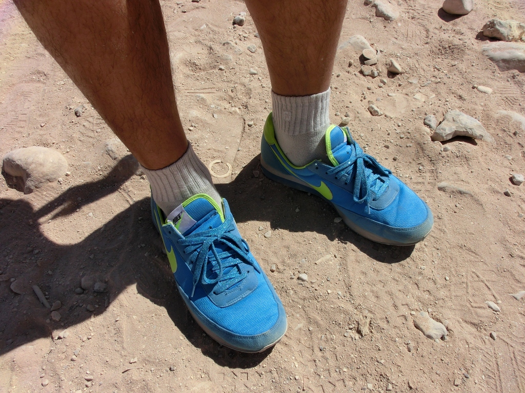 足元はNIKE ELITEは快適だがやや軽装過ぎたか。砂塵は靴の中まで入ってくる。