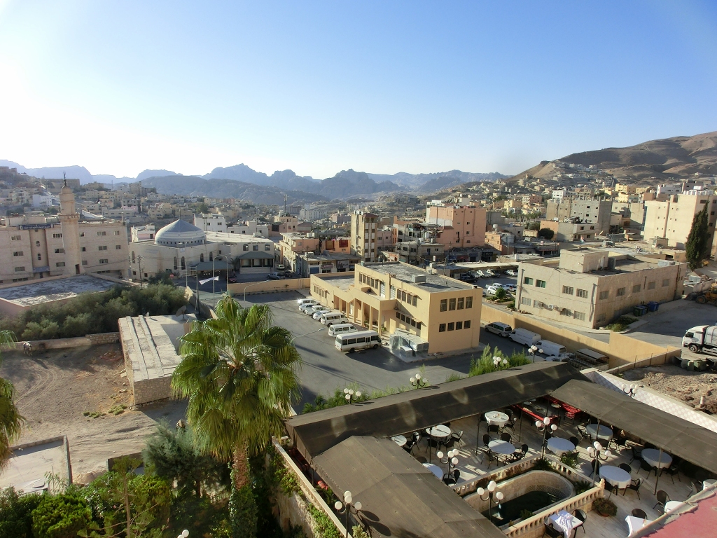 ペトラ市内(=Wadi Musa)。前回泊まったMOVENPICKが見える。