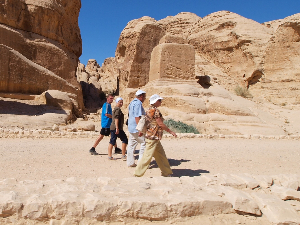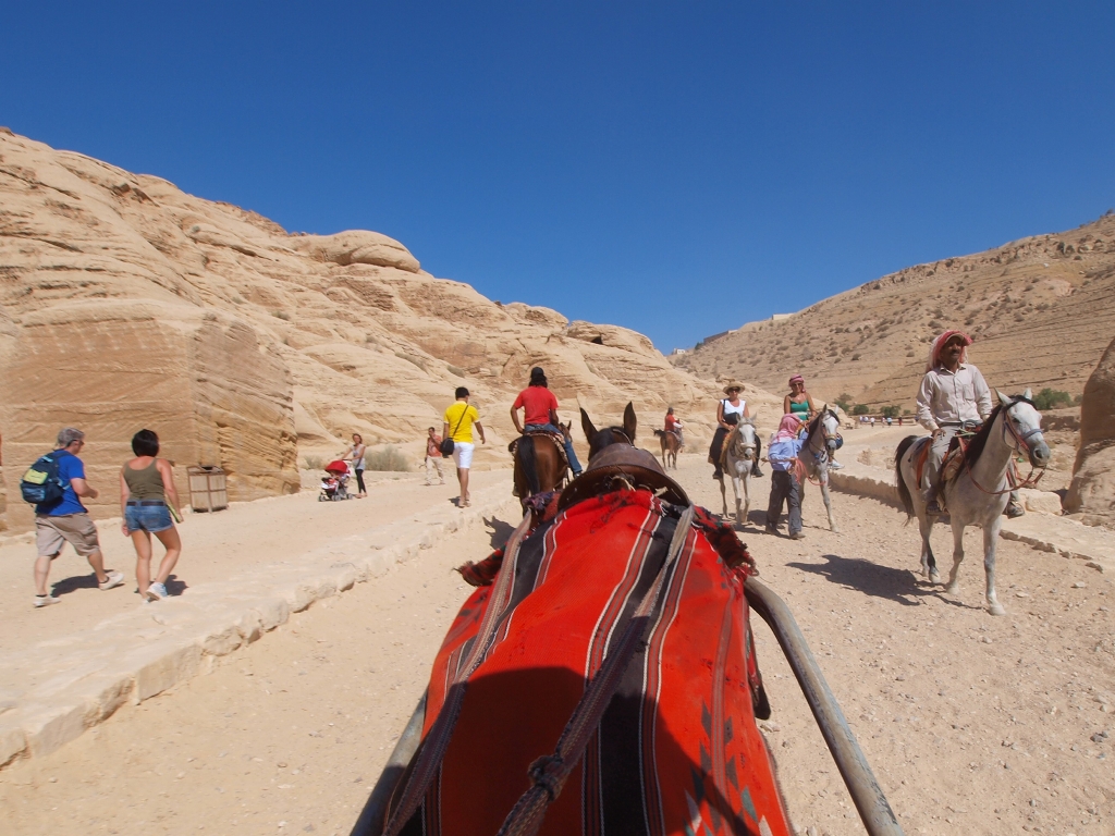 シークの途中でガイドさんご一行もご苦労様。この先を考えると皆さんの体力が心配。