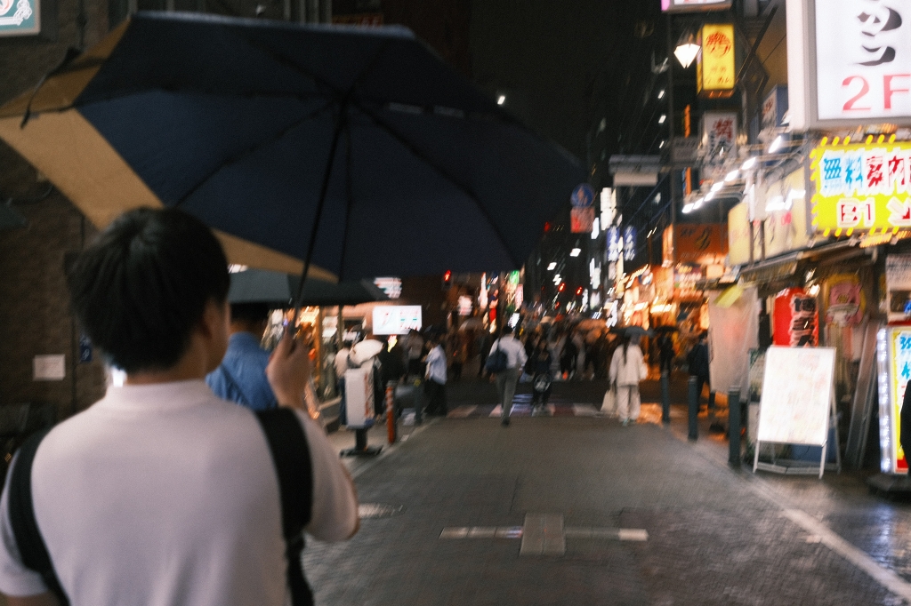 濡れた道路にネオンが反射すると、お決まりのしっとりとした光景が撮れるので好都合。