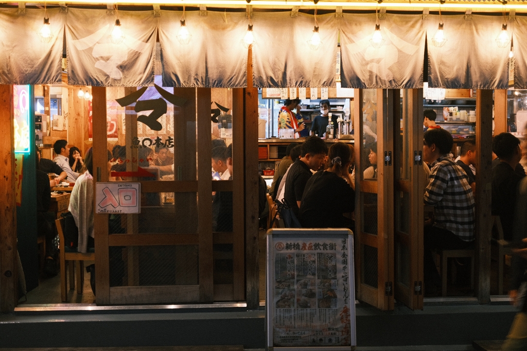 アフターファイブの新橋は古くから近隣のサラリーマン達で賑わう飲食街も広がる。