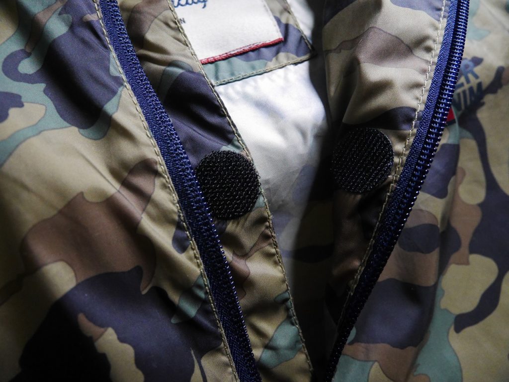 ポリエステル100%製で何の変哲もないカモ柄で裏地なしのブルゾンだが、