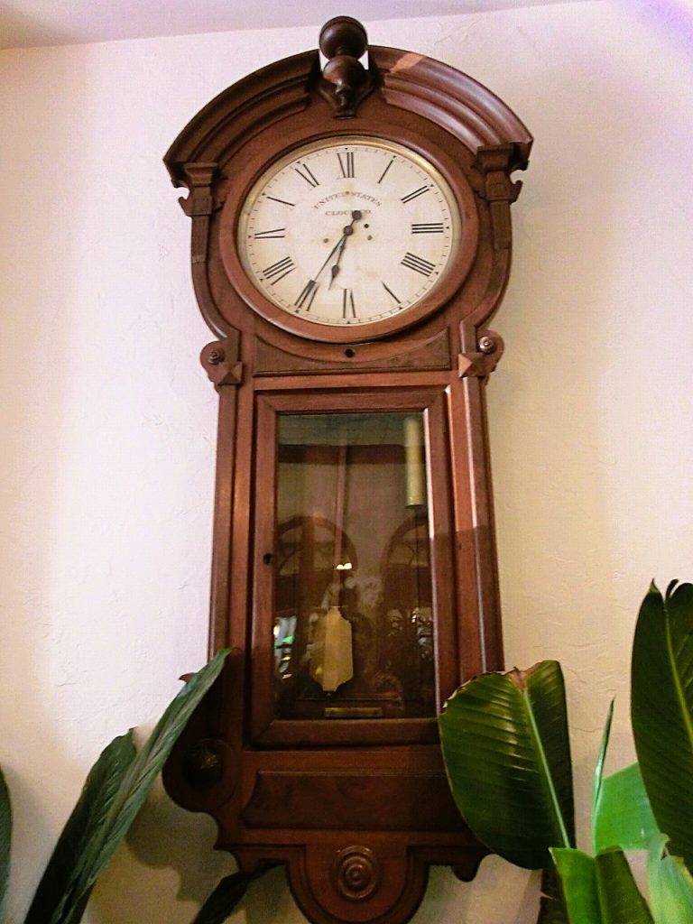 壁には1900年前後に繫栄した”United States Clock Company”製の振り子時計が