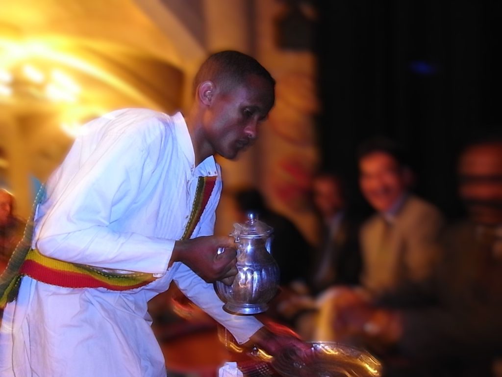 夜は地元のレストランで食事をした。名前は正確には思い出せないけれど、観光客向けというより、地元の人々も多く訪れる場所だった。インジェラの酸味と、豆や肉の香辛料が混ざり合う。音楽が鳴り始めると、素足のダンサーたちが舞台に現れ、手足を高速で震わせながら踊り始めた。