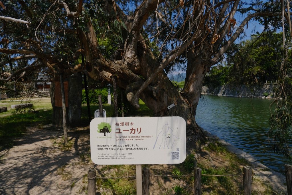被爆樹木ユーカリ。爆心地から740m。被爆して生き残っているユーカリはこの木だけ。