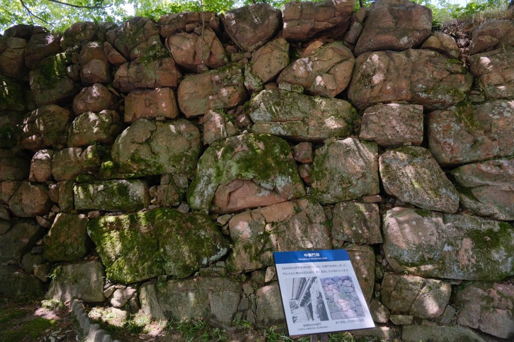 中御門跡の石垣は被爆により赤く変色しひび割れている。