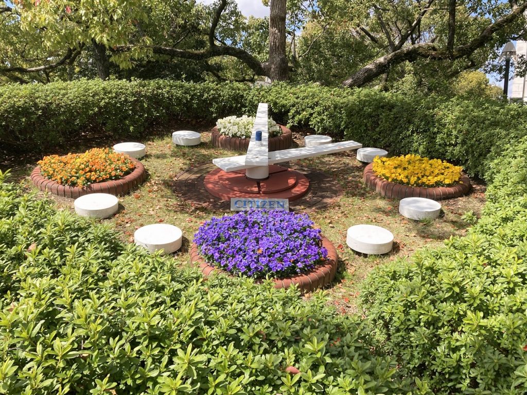 季節の花に囲まれ、観光客の待ち合わせ場所としても長年に亘り親しまれてきたが、今年8月、故障により時針が撤去されてしまった。秒針は数年前に既に撤去されている。