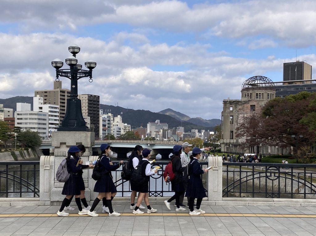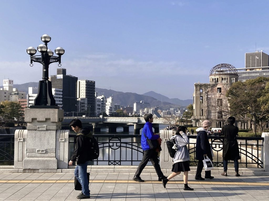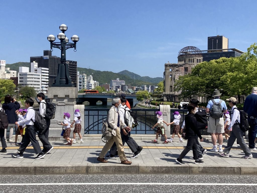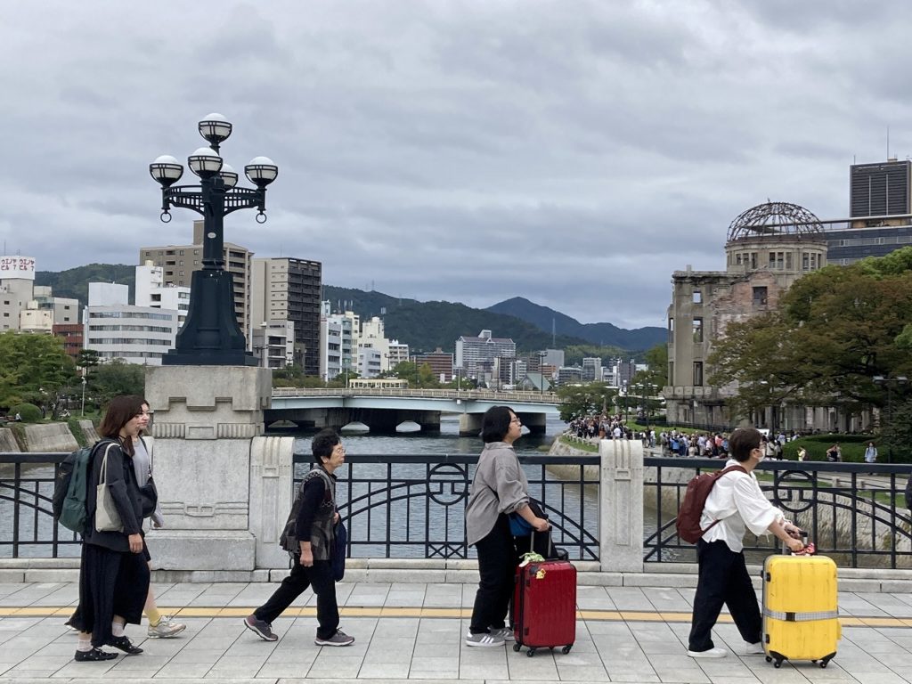 訪日観光客の足取りは緩み、元安橋は慰霊と日常の間に、穏やかな均衡を取り戻す。
