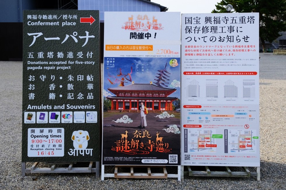 残念ながら五重塔は修復中だが、復元された中金堂や南円堂が美しく佇む。
