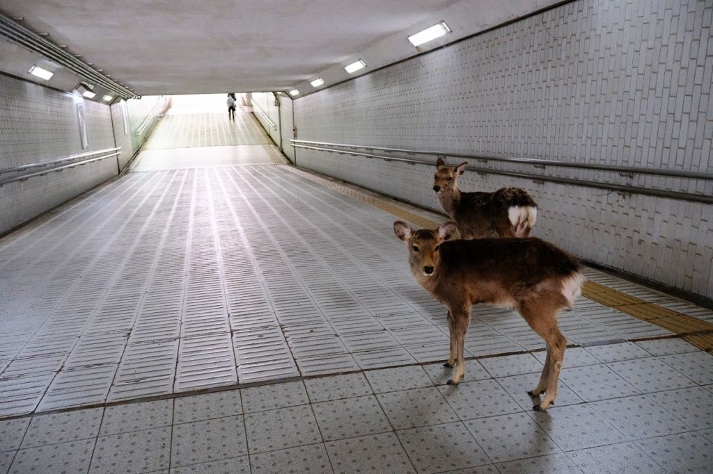 地上でも地下道でも、ここでは「神の使い(=神鹿:しんろく)」が最優先だ。