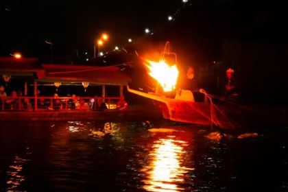 【名鉄犬山庭園駅に到着。乗船前に鵜匠の説明を受ける】 名古屋駅から名鉄犬山線に乗 …